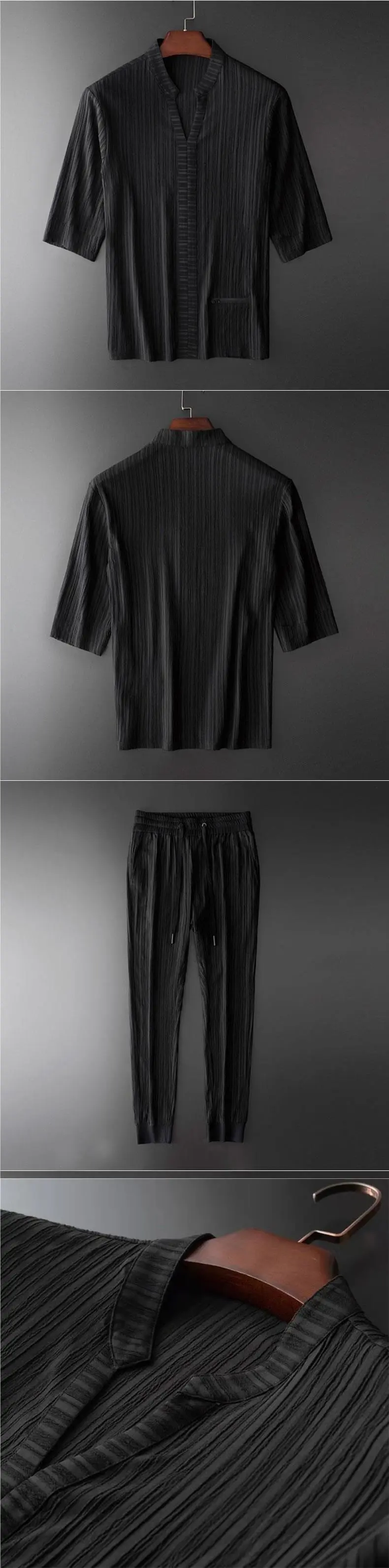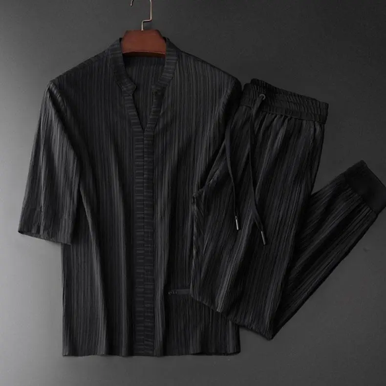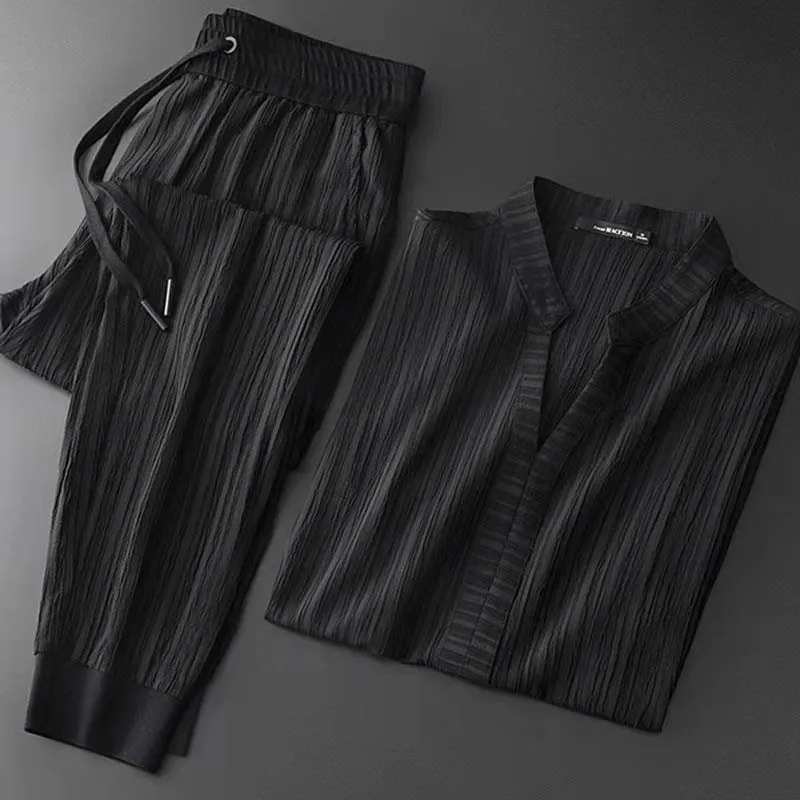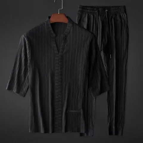 Men's Solid Color Breathable Fashion Ice Silk Leisure Suit